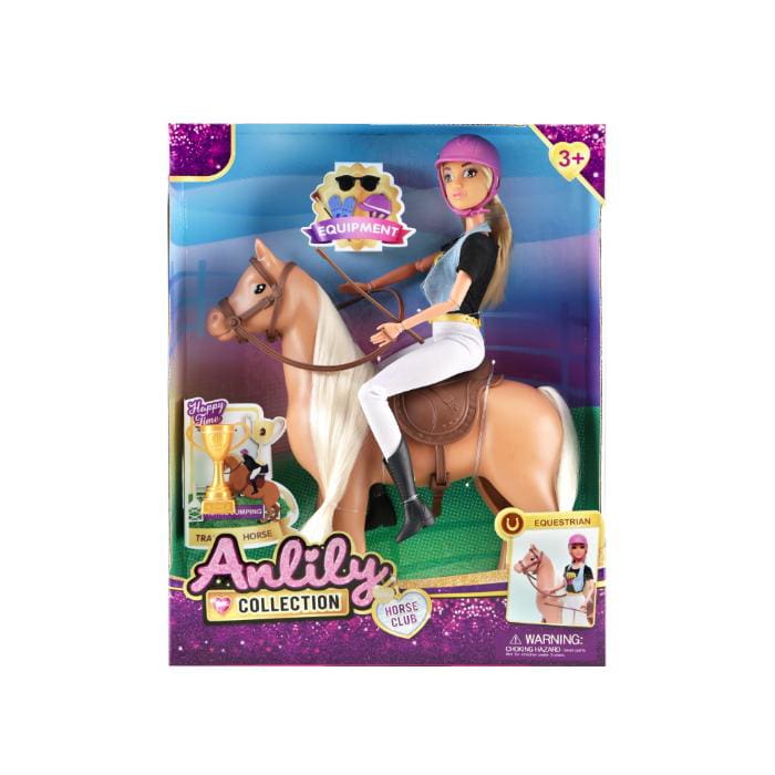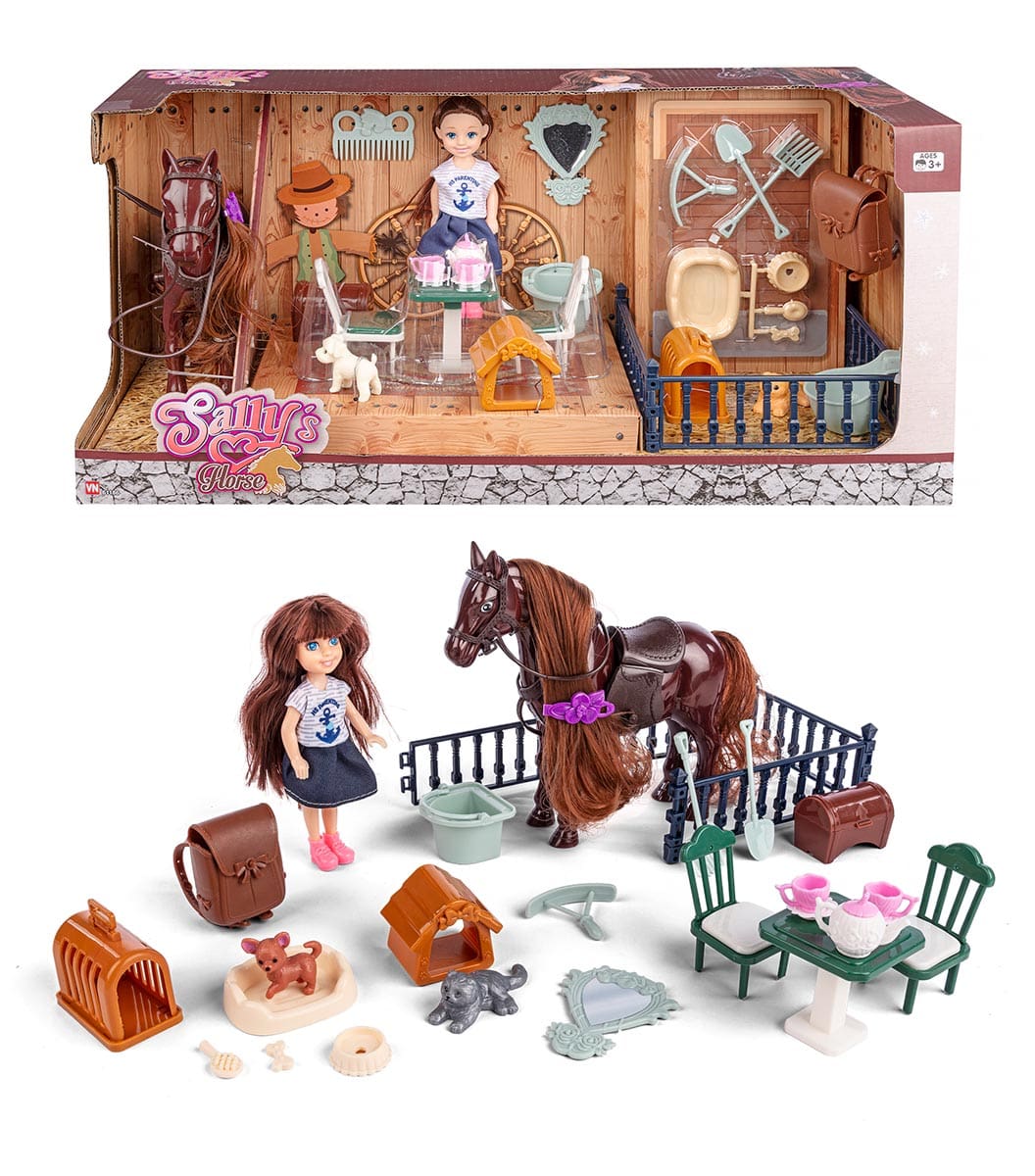 Sally dukka og hestur v/tilhoyr